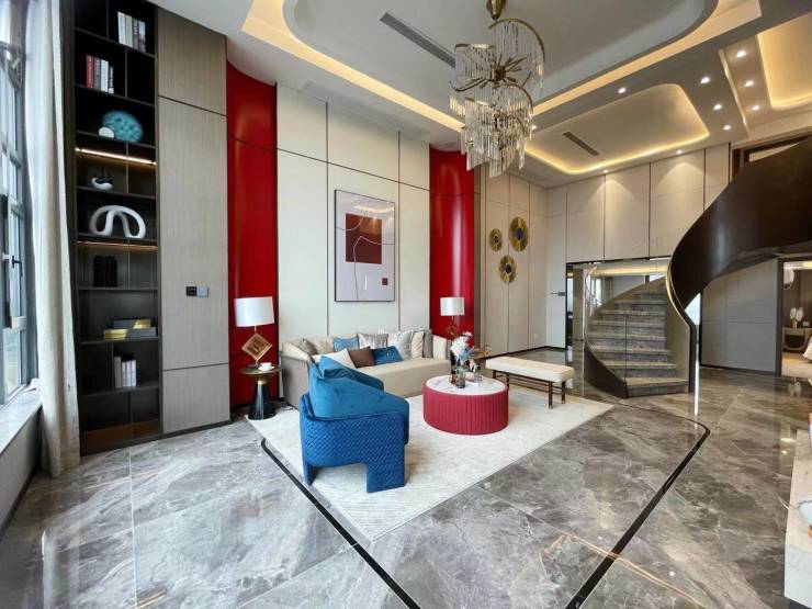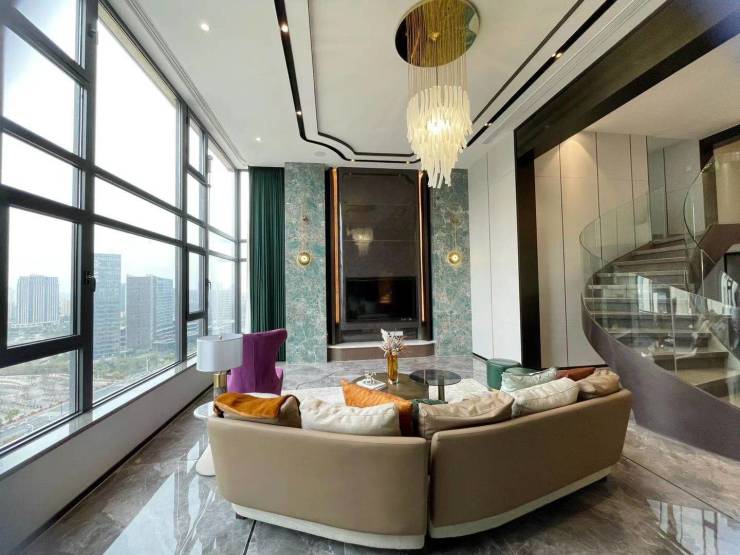 建面约165-174㎡ ,约4.5米层高,使用面积最高可达270平;板式结构;一梯两户;南北通透,短进深,大面宽;