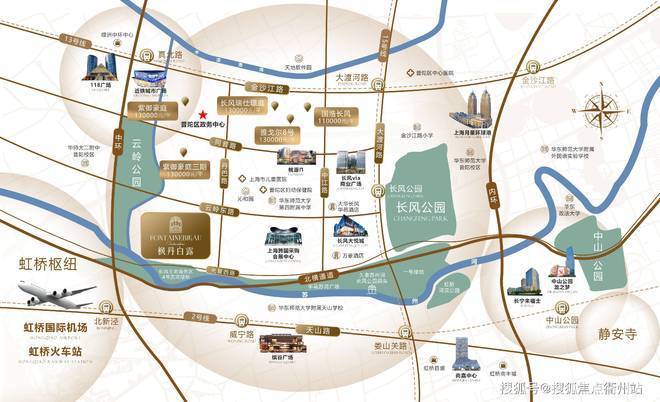 地铁:2 号线北新泾站、13 号线真北路站、15 号线长风公园站三轨环绕,步行可达。