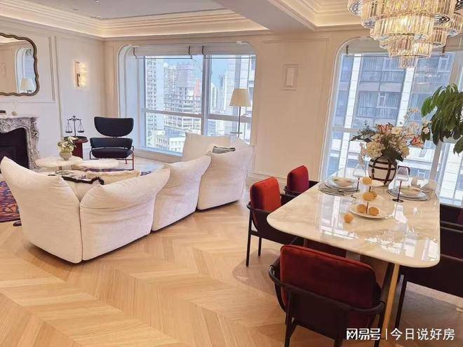 在售户型有105-200平方米,总价600-1200万,得房率80%,物业费14.8元/平方米/月,法式装修,中央空调、地暖等配套。与法国雅高集团的诺富特酒店双子塔结构组成。