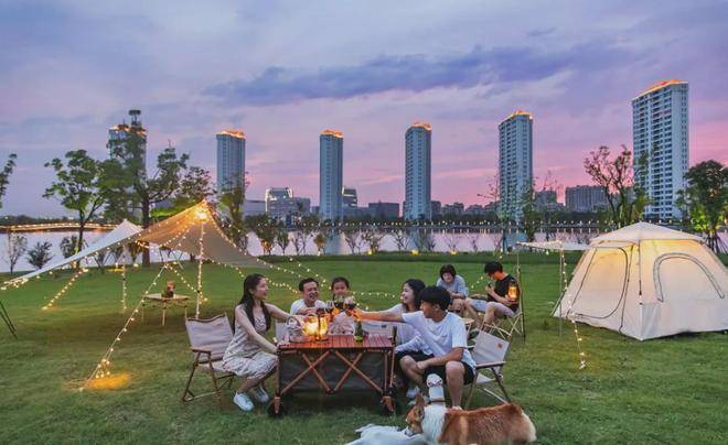 时下流行的露营、野餐也已是兰香湖生态社区的“常规节目”,周末你能看到不少年轻人在此扎帐篷,不止是业主,更多的是游客。
