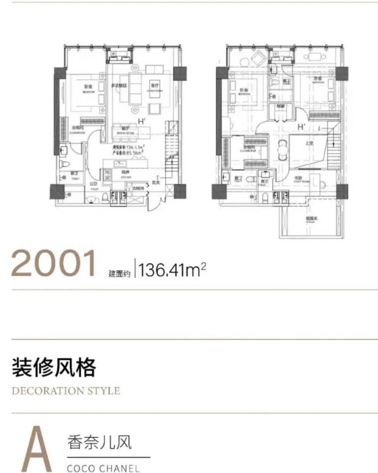 4 房 2 厅 5 卫 136~138 m²,实得 使用面积 200m²左右 ,899 万~1050 万