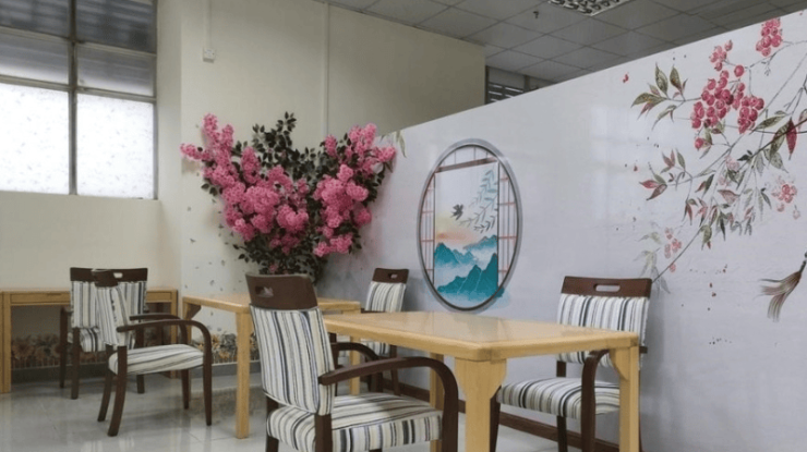 机构每层设置120平方米的多功能活动室,配备书画阅览区、手工创作台及智能健身设备;户外设有300平方米的康复花园,种植薰衣草、迷迭香等具有镇静作用的植物,形成天然的感官疗愈空间。此外,棋牌室、户外活动场所等公共区域,为长辈提供丰富的社交与娱乐选择。机构内配备轮椅坡道、无障碍通道等设施,公共区域安装监控摄像头,实时监测安全状况,消防设备定期检查维护,确保紧急情况下可快速响应。