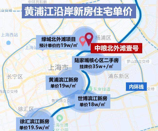 在上海一线滨江板块地图中,陆家嘴,黄浦滨江、徐汇滨江等地新房单价都已突破19万/㎡。今年6批次,北外滩地块也紧随其上,溢价率46.3%,预计售价约19万/㎡左右,成为今年最炙手可热的滨江板块之一。