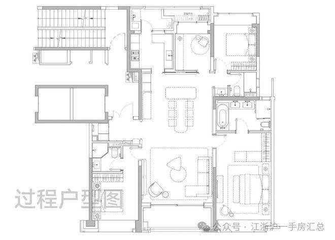 主卧大套房设计带超大主卫和衣帽间,面积约50㎡ ,尺度感与市面上近300㎡的顶豪拉平。