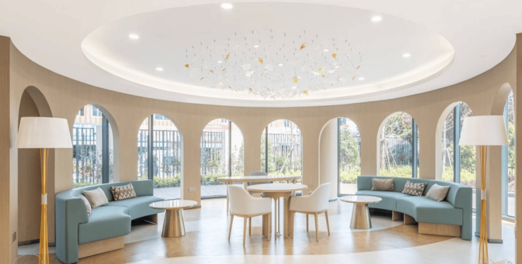 护理院总建筑面积约1.2万平方米,核定床位226张,内部空间科学划分为生活区、康复区、休闲区及医疗辅助区。房间类型涵盖单人间、双人间及多人间,均配备独立卫浴、紧急呼叫系统、中心供氧装置及无障碍设施,满足不同长者的居住需求。公共区域设有1500平方米的户外花园、多功能活动室、书画阅览室及手工制作室,为长者提供亲近自然、社交互动的场所。