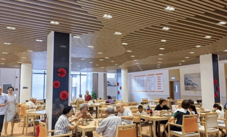广州综合养老服务中心(海樾荟)全场景适老化设计,公共区域与居住空间兼顾安全、舒适与美观: