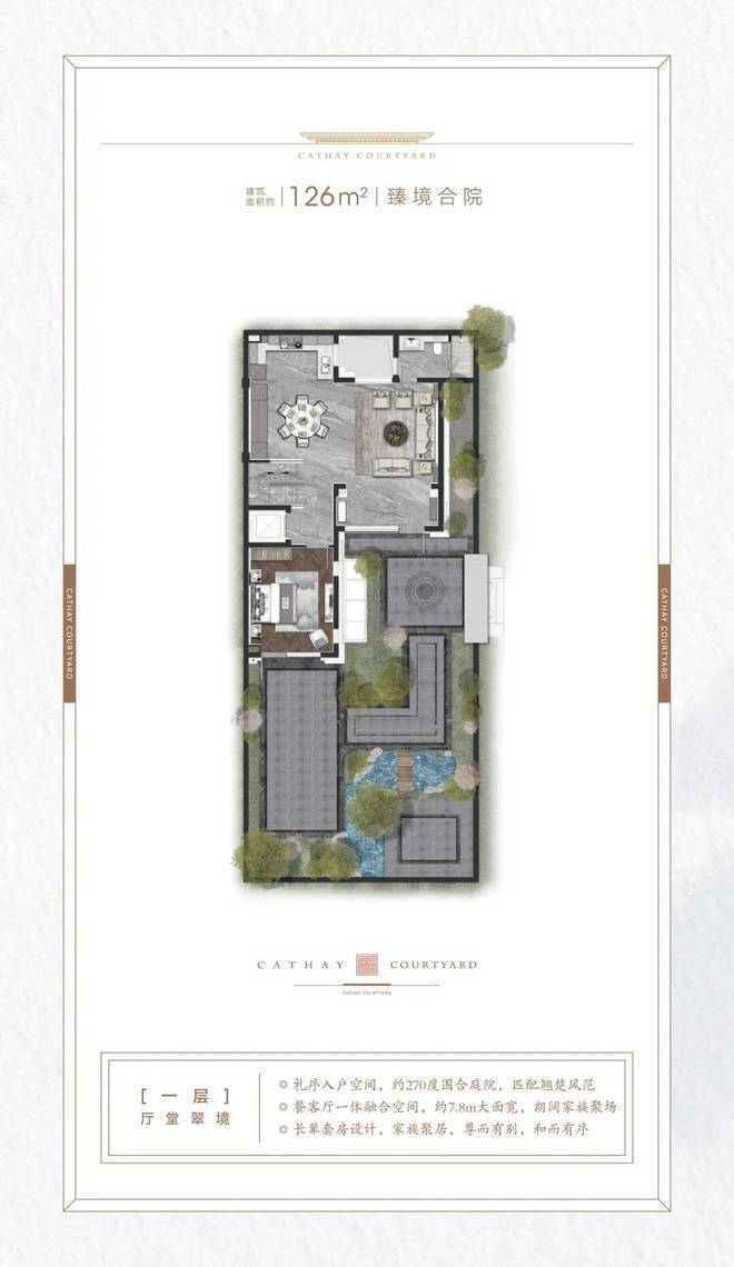 建面约126㎡的合院户型,同样适合三代同堂,或者三口之家以及高净值年轻夫妻等家庭。