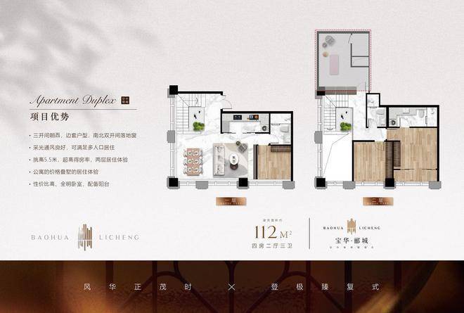 复式公寓:层高5.5米,面积112 179㎡,采用LOFT设计,买一层享两层空间。34