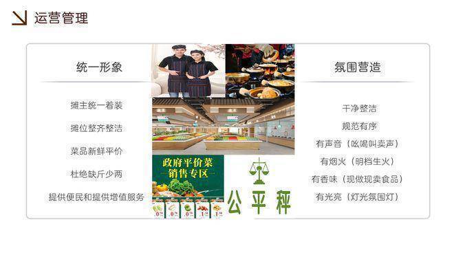 业态定位:智慧生鲜市集:生鲜、水果、肉类、水产海鲜 、蛋类、豆制品、干货炒货、熟食、小吃、面食、粮油 、特色小吃、调味