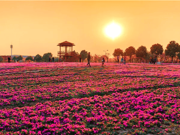 出门即是樱花公园,樱花公园占地约 850 亩,分为樱花林、樱花岛、樱花广场等几部分,“樱花八景”将景区点缀得如诗如画。樱花广场的亭台楼阁,建筑风格皆为唐风,与烂漫樱花十分匹配,再现盛唐文化景象。