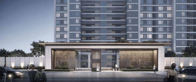 尊贵大气的礼仪门头,结合现代简洁的景观线条,彰显尊贵与归家礼序感,带来品质归家体验。