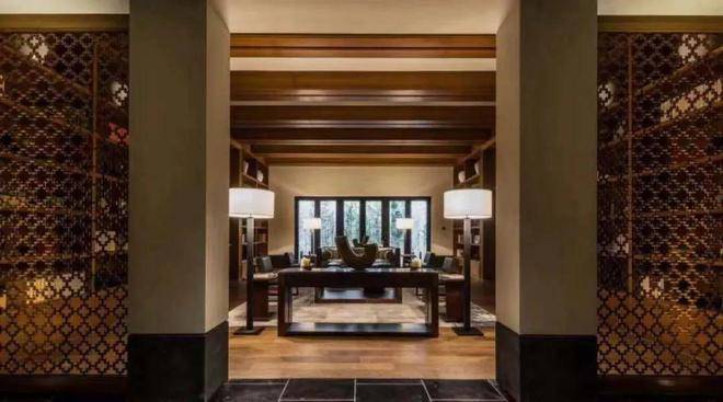 在室内设计上,一间叫”云深处“的迎宾轩, 是安缦设计师Jaya在上海唯一参与设计的私宅作品。 整体设计低调奢华,高端大气。