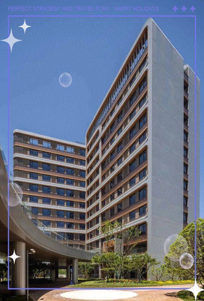 在单体设计上,我们巧妙地将房间分体空调集中布置在北向位置,从而将南向界面完全敞开,确保了室内环境的光照充足,为居住者创造了既舒适又宜人的生活空间。同时,为了增强建筑的辨识度,我们为每栋楼的入口门斗都设计了独特的形式,这些别具一格的设计不仅实用,更在细节上体现了对老年群体特性的关怀。此外,沉稳而低饱和度的温暖色调选择,既考虑到了老年人对色彩的感知能力,又反映了他们的心理需求,使得整个建筑呈现出一种深厚且隽永的温润韵味。