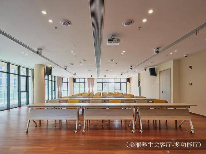 美丽养生会客厅(多功能厅),百变场景,可组织各类党建讲堂、兴趣小组和交谊舞会等。亦可承接包场,提供老友记、同学会等“活动 + 餐饮”服务。