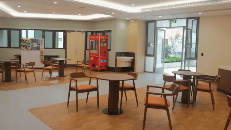 公共区域的设计同样精彩纷呈。5500平方米的功能空间涵盖多功能活动室、书画室、KTV练歌房及多媒体影院,日均举办书法班、园艺班、合唱团活动超3场,满足长者多样化的文化娱乐需求。岭南文化馆展示广绣、茶艺等非遗技艺,让长者了解和传承传统文化;长者大学开设粤语课、智能手机班,帮助长者适应现代社会的发展,提升生活品质。年均培养“银龄达人”超500名,让长者在学习中找到成就感和自信心。屋顶花园打造500㎡空中花园,配备智能灌溉系统,长者可参与薄荷、罗勒等香草种植,在劳动中感受生命活力,体验种植的乐趣。