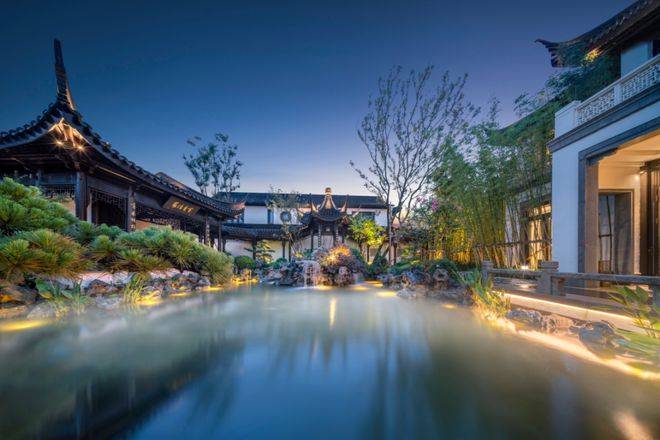 项目以苏州园林为范本,邀请桃花源系团队主笔,非遗“香山帮”造诣,精雕细琢,打造古典建筑与现代人居完美结合的的理想居所。