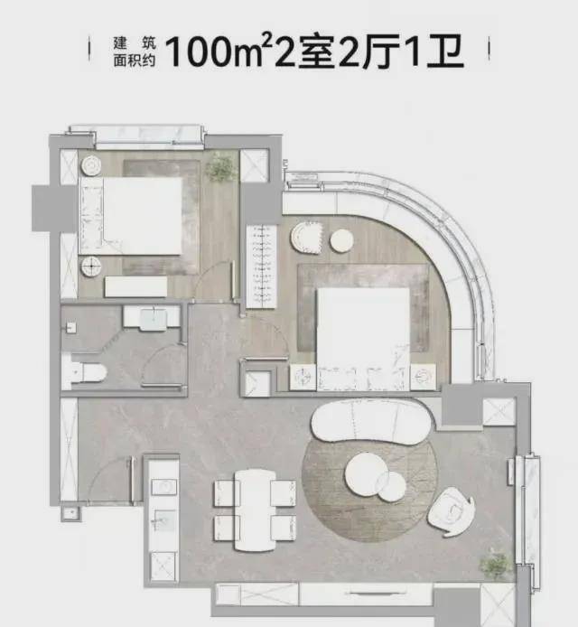 主力户型:约40-100㎡ 1-2房
