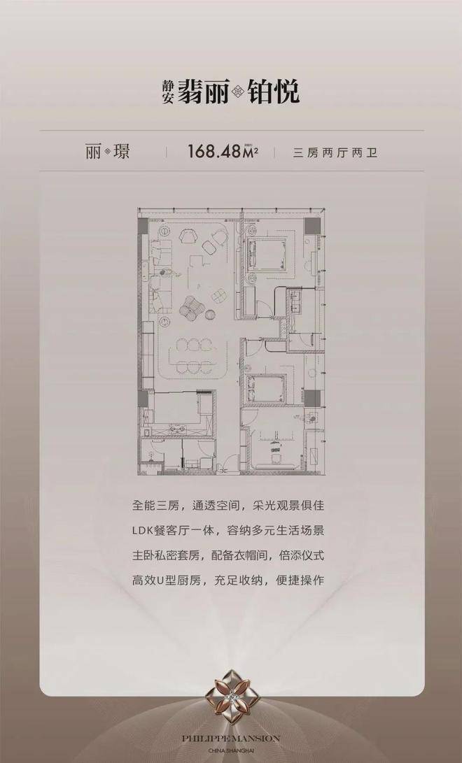 全能三房,通透空间,采光观景俱佳LDK餐客厅一体,容纳多元生活场景主卧私密套房,配备衣帽间,倍添仪式高效U型厨房,充足收纳,便捷操作