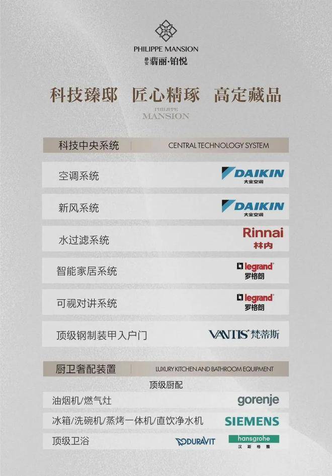 采用大金空调、大金新风系统、林内水过滤系统