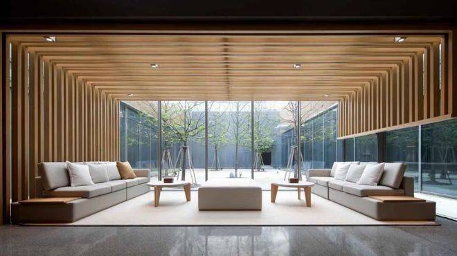 室内的建筑采用中西融合的设计风格,在现代实用化的基础上点缀中式细节,双层会所采用了大量的落地窗,采光和视野都非常好,从室内就能看到的庭院、绿植。