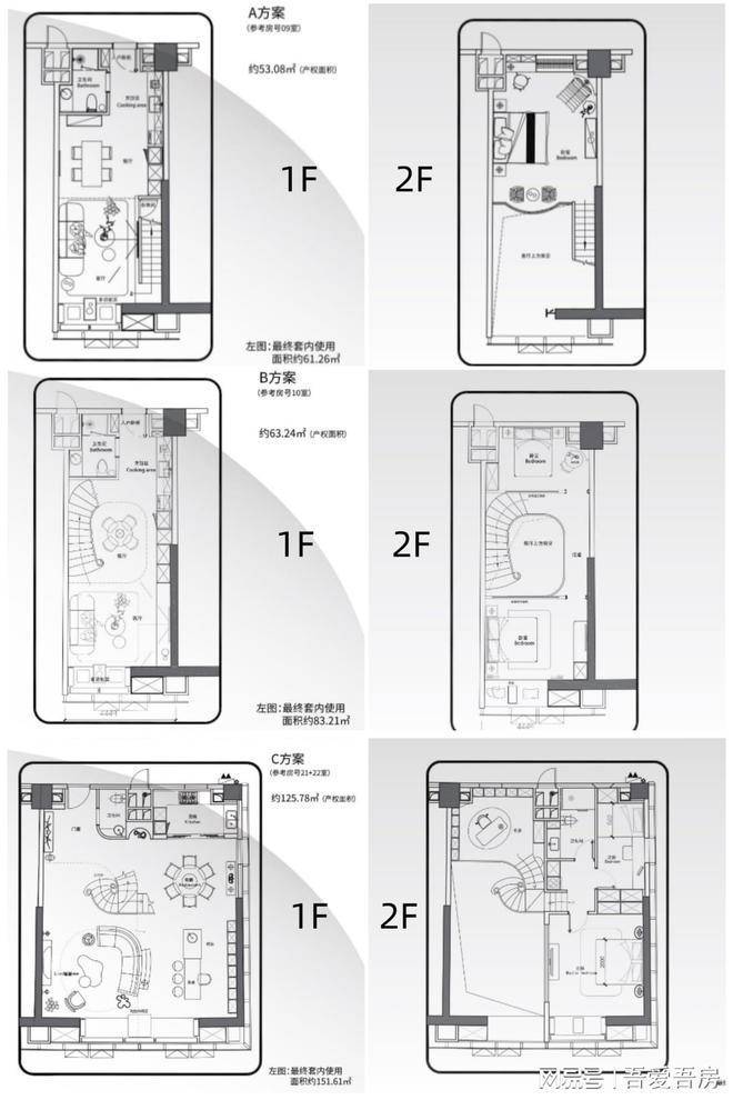 公寓面积:约52㎡/61㎡/82㎡/96㎡、