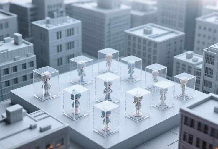 我们如同被摆放在亚克力盒中的精美手办,精致、优雅,亦如是麻木、孤独。似乎除了生活在这些方形世界里,我们已经找不到可以投入其中、有事可做的其他空间。