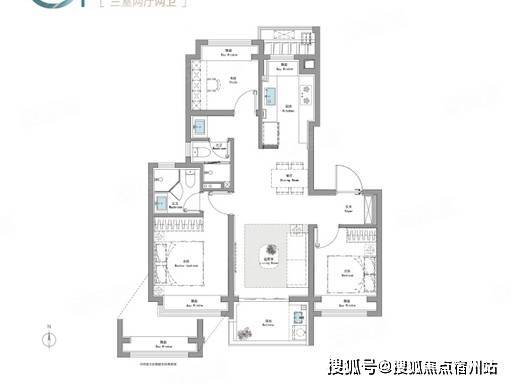 建面约 99㎡网红三房:南北通透,主卧套房设计,独立卫浴 + 衣帽间,双卫生间配置,告别早高峰卫浴争抢,空间灵动,兼具实用性与舒适度。
