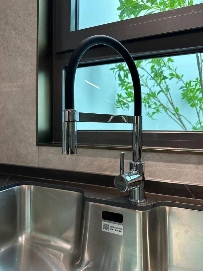 水槽也是一个大单槽,放得下炒锅汤锅这种大物件~抽拉式龙头,清洗大水槽的时候很方便,360度旋转伸展自如,这款弯管还是硅胶材质,柔软耐用有弹性,还可切换出水模式,出来的水柱也是很柔和细腻不飞溅。