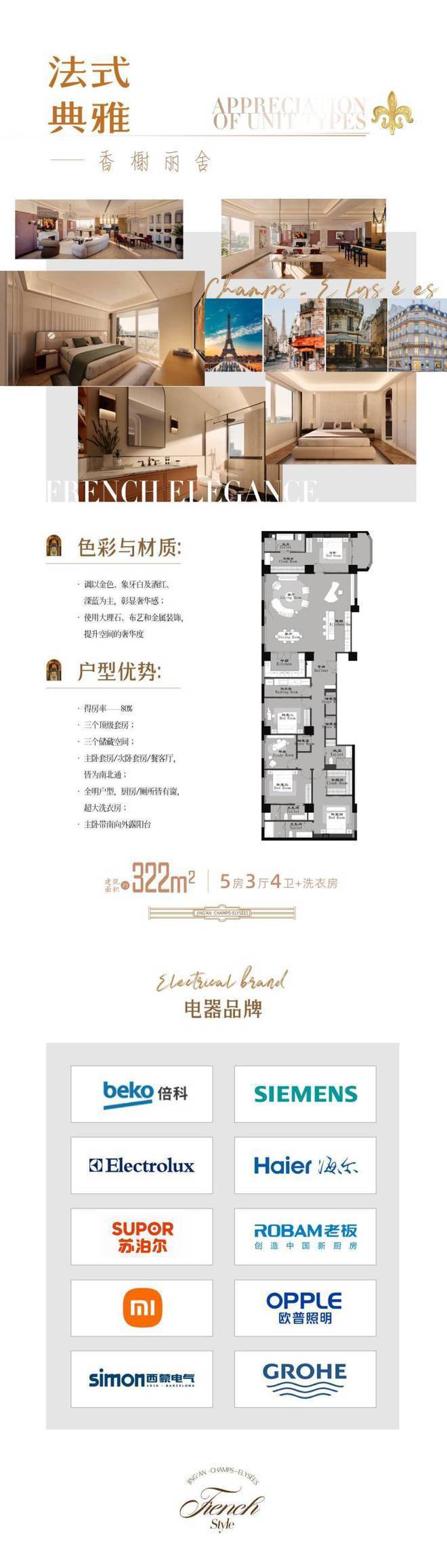 在售面积约38-322平,总价198万起,法式精装公寓