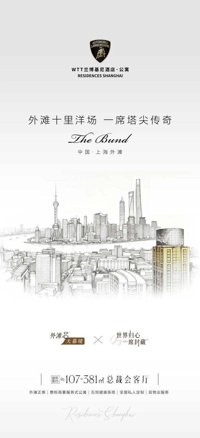 黄浦人民广场旁,推窗即揽黄浦江+四件套全景【WTT兰博基尼酒店·公寓】面积107~381㎡,总价900万起,不限购,通燃气