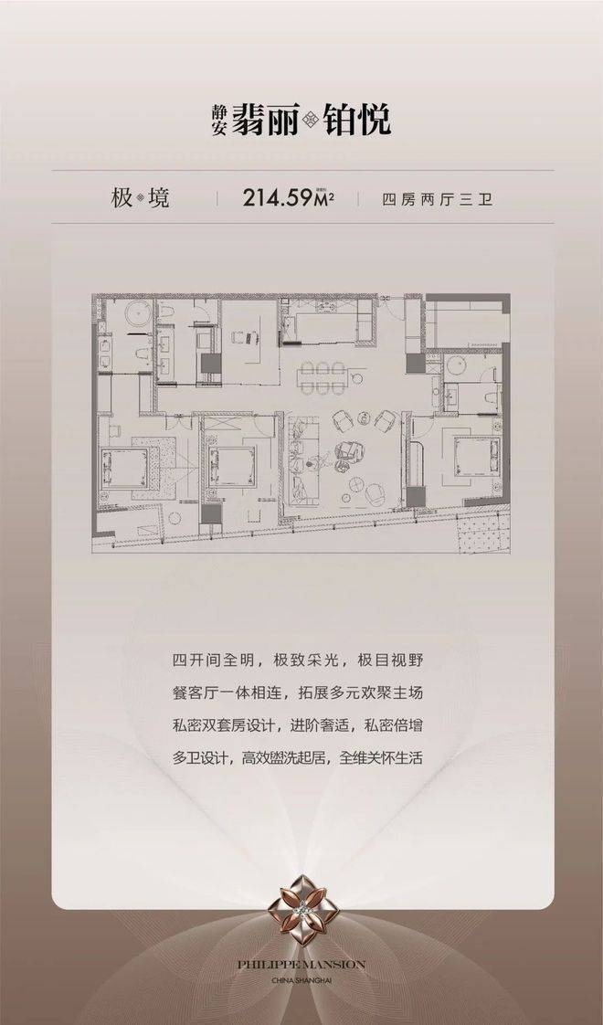 极境户型:约214㎡|4房2厅3卫(四开间+双套房)