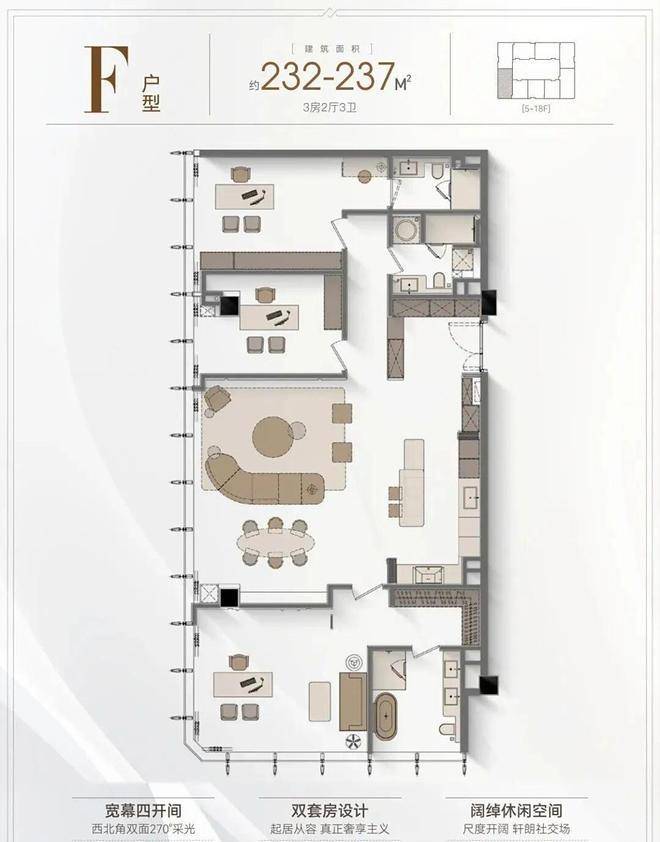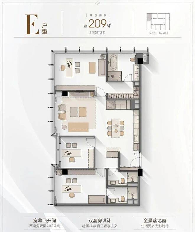 5️⃣ 户型优势:4.2米层高,全落地窗设计,多套房设计满足三代同堂