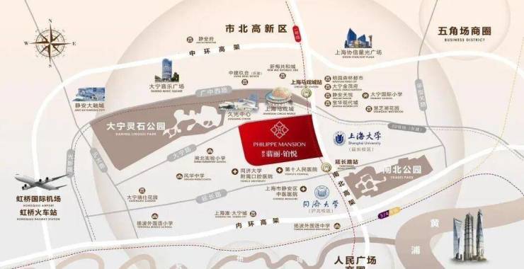 •辐射商圈:人民广场商圈、静安寺商圈、徐家汇商圈、五角场商圈