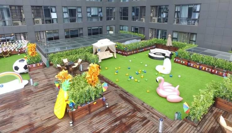 一个人安静地躺在草坪沙发上,抬头仰望静谧星空,记忆里的童年时光立刻涌上心头……这是法朵公寓3楼的一处1200㎡空中花园,我第一眼见到,就是一见钟情的感觉。