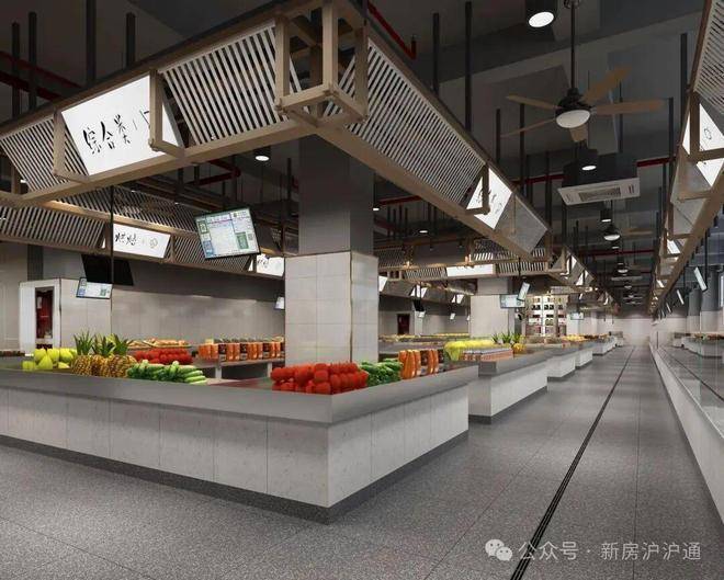 市场内装修按照智慧农贸市场装修要求交付,内部配套中央空调、新风系统、部分配套经营用品