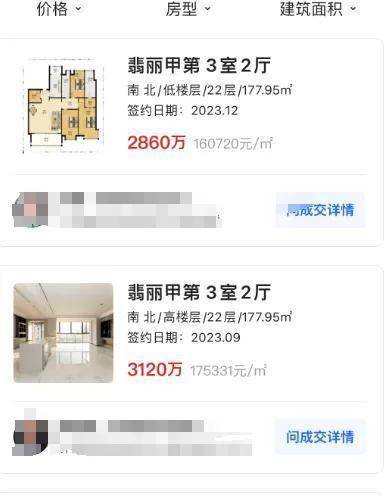 再以单个案例来看,板块内的标杆楼盘翡丽甲第,开盘价在96000元/㎡,在经过2023年的惨烈回调后,仍然有超过60%的升幅:
