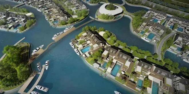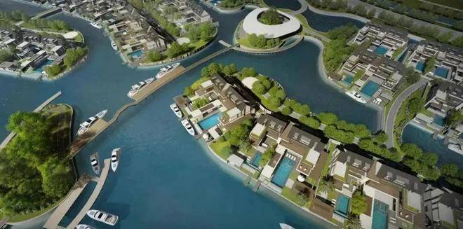 项目从此前曝光的设计方案就可以看出亮点,每一排别墅前都有一条渠道,引入水系,可以停游艇。