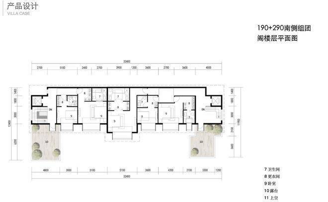 二层都是套房设计+露台+客厅挑空,190的二层是双套房、290的二层是三套房。