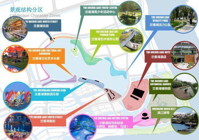 如今兰香湖的风景日趋成熟,湖岸风景线与建筑风景线 相互映衬,水景、江景、楼景、桥景彼此交融,都市与生态之美于此交相辉映。
