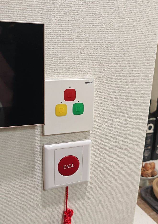 室内都采用适老化设计,比如橱柜、茶几高度的设置,符合老年人的身高和拿取便捷性;家具的倒圆角处理;全屋无障碍设计没有高差;有扶手的床;卫生间的扶手;全屋各处都有紧急呼救铃;防滑材质等,非常人性化。