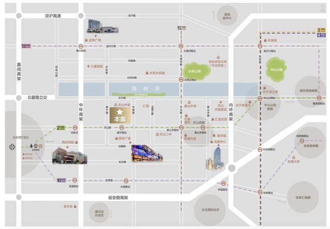 交通方面:地铁2号线威宁路站上盖,2站可达中山公园与3/4号线接轨,地铁10/13号线紧邻;公交:519路、827路、158路、646路等多条公交;紧邻内环高架、中环高架、延安西路高架,出行非常便利。