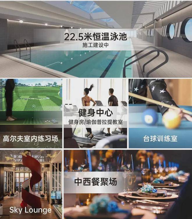 同时,项目自身还拥有3500㎡尊崇会所,涵盖恒温泳池、室内高尔夫、Sky Lounge、商务会议室、私人影院等 20 项功能,不仅是休闲娱乐的好去处,更是塔尖圈层的社交能量场,资产价值与社交资本的双叠加。