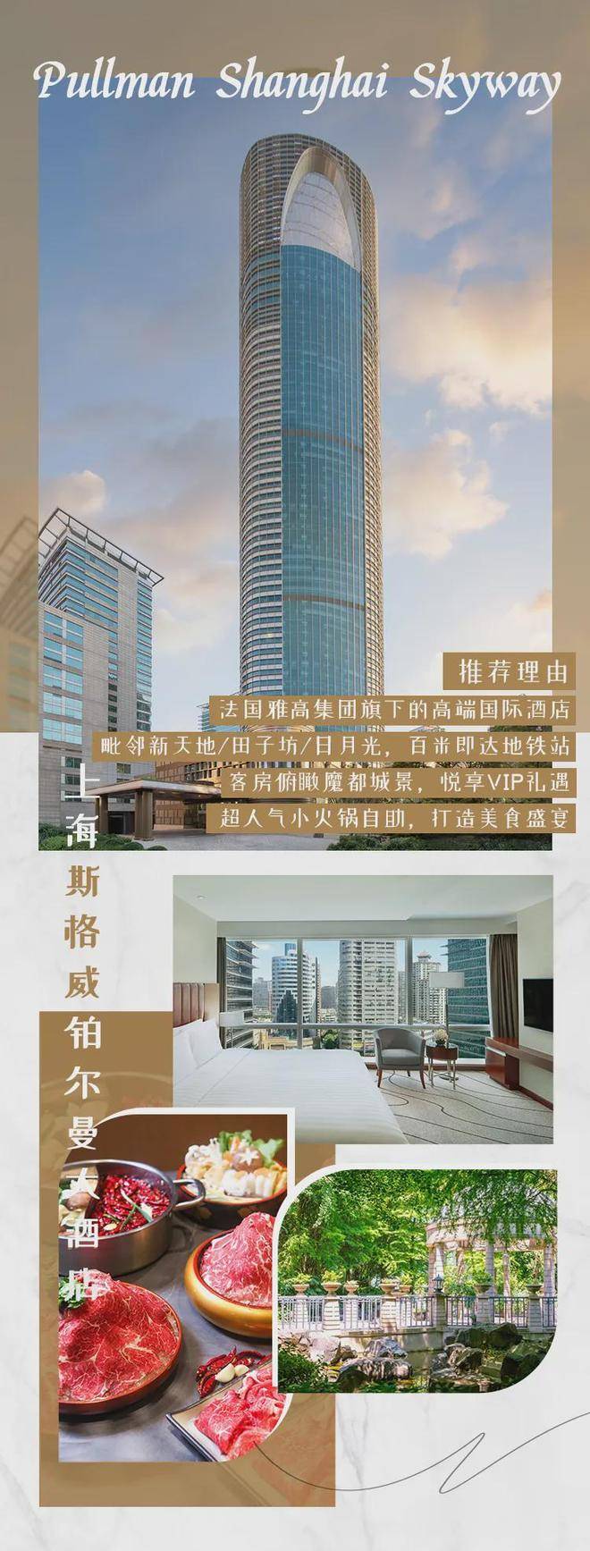 作为法国雅高集团旗下的高端酒店品牌,上海斯格威铂尔曼大酒店传承了集团对高端与品质的专注,并散发着浓郁的法式浪漫。