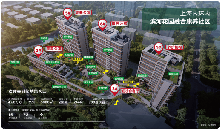 在上海养老圈持续瞩目与不断期待之下,由地产养投和中信养老联袂打造的上海核心区康养标杆——昆仑邸康养社区正式开放亮相。作为上海内环内新建最大的康养项目, 昆仑邸总建筑面积约4.68万方,包括自理和护理两个区域,其中康养公寓281间,护理床位数244张,可为约700位长者提供一站式医康养服务。