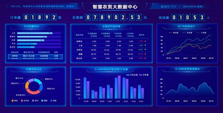 智慧农贸市场是指运用大数据,采集交易信息,通过“一云多端〞智慧系统,实现对农贸市场的管理和监督的信息网络化、工作标准化、管理现代化的网络平台。