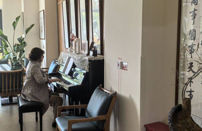 喜爱独处的阿姨在弹奏钢琴