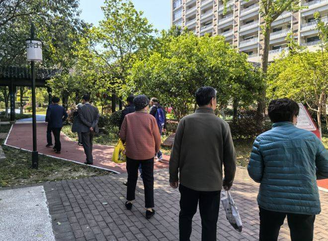 叔叔阿姨们欣赏着满园春色