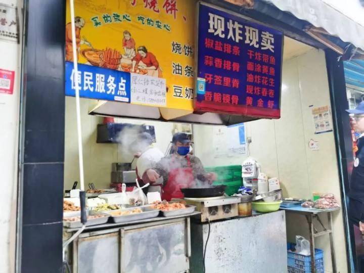 除了市场内的宝藏摊位,外围商铺更是老杭州的私藏菜单!采荷光头鸭的油润香气、南星桥面店的筋道口感、望江门千张包的Q弹美味 …… 还有那些小馆,比如周边居民常去的“夫妻早餐铺”——清晨的烧饼油条蛋饼,夜晚的炸物小食