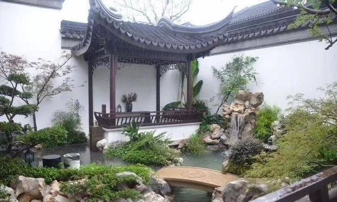 中式园林是最纯粹最理想的精神皈依之所。 进入园林庭院,古朴有致, 瘦漏透皱的太湖石下一方清泉涵韵其间,低头有池水如镜,抬头有瀑布如练,“ 水积必然龙有穴 ”,富贵因子已然埋藏于此。