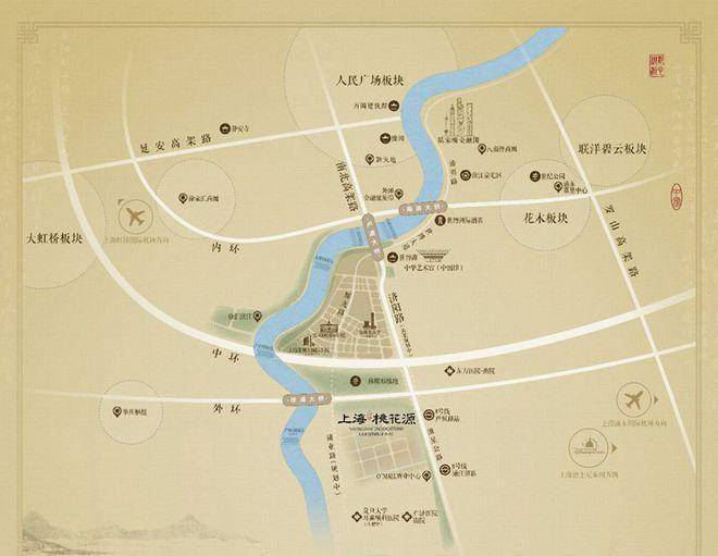上海桃花源的择址,与传统市中心人民广场在南北中轴线上,由济阳路快速路、中环、外环以及各大隧桥快速连通市区,这是项目出则繁华的基础。